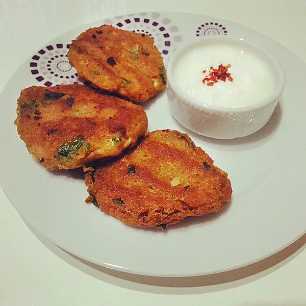 Dann geben Sie die restlichen Zutaten dazu und kneten Sie es. Nehmen Sie kleine Stücke von der Mischung ab und formen Sie die Blumenkohl-Puffer. Braten Sie es beidseitig in Öl. Servieren Sie es nach Belieben mit Knoblauch Joghurt. Fertig!