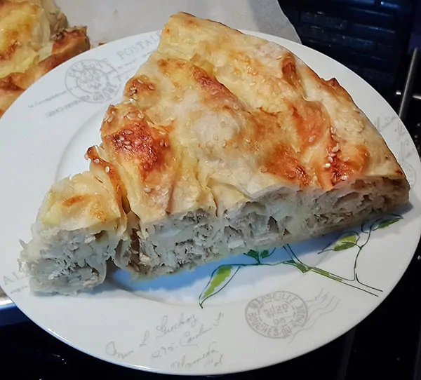 Als nächstes bestreichen Sie den Börek mit Hähnchen mit der restlichen Soße. Backen Sie es bei 180 Grad vorgeheizten Ofen ungefähr 30-35 Minuten. Fertig!