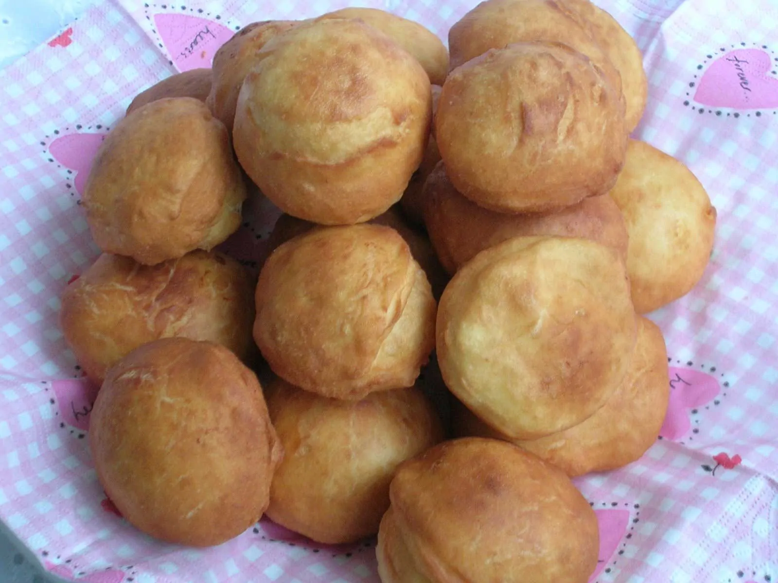 Als erstes geben sie das Wasser und die Trockenhefe einer Schale zu und mischen es. Geben sie den Salz und allmählich den Mehl zu. Kneten sie den Teig. Danach machen sie den Deckel zu und lassen den Teig ungefähr 1 Stunde ausspannen. Als nächstes nehmen sie Stücke von dem Teig ab und formen es auf der Arbeitsfläche, den sie mit Öl einschmieren. Frittieren sie diese in einer Pfanne. Die frittierten Teigstücke sind fertig zum servieren.
