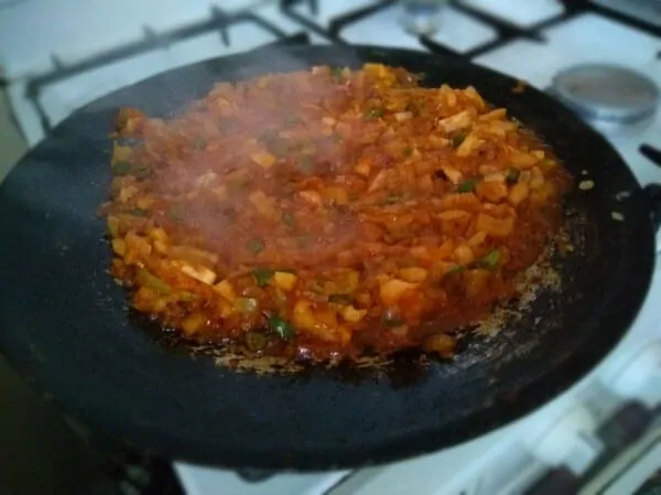 Als erstes geben sie das Fleisch einer Pfanne zu und braten es mit etwas Wasser. Geben sie die dünn geschnittenen Zwiebel einem Kochtopf zu und braten sie es mit etwas Öl. Danach geben sie die Paprika, die Knoblauchzehe, die Tomaten, die Tomatenpaste und das Fleisch dem Kochtopf mit den Zwiebeln zu und braten es weiter. Geben sie etwas Wasser, den Salz und die Gewürze dazu und lassen sie es bei mittlerer Hitze kochen. Servieren sie das gebratene Lammfleisch mit Weizengrütze Reis und Salat.