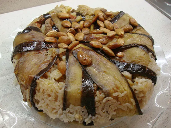 Zubereitung der Lammfleisch mit Gemüse und Reis – Maklube