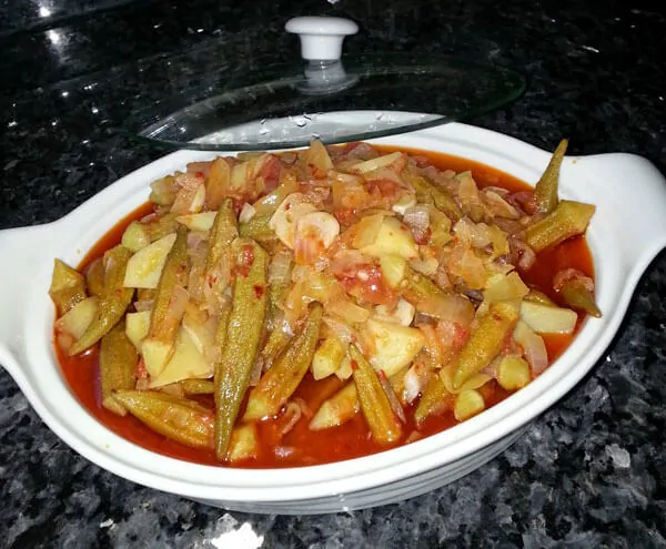 Waschen Sie als erstes die Okraschoten und schneiden Sie die Spitze. Achten Sie darauf, dass Sie das Fleisch nicht mit schneiden, sonst wird das Gericht schleimig. Braten Sie die Zwiebel in einem Kochtopf mit dem Olivenöl. Geben Sie die Paprikapaste und die Tomaten dazu. Braten Sie es weiter und geben Sie die klein geschnittenen Kartoffeln und die Okraschoten dazu. Danach geben Sie die Knoblauchzehe, den Salz, den Zucker und den Zitronensaft dazu. Gießen Sie 1 Glas Wasser darüber und lassen Sie die Okraschoten mit Olivenöl bei schwacher Hitze ungefähr eine Stunde kochen. Fertig!