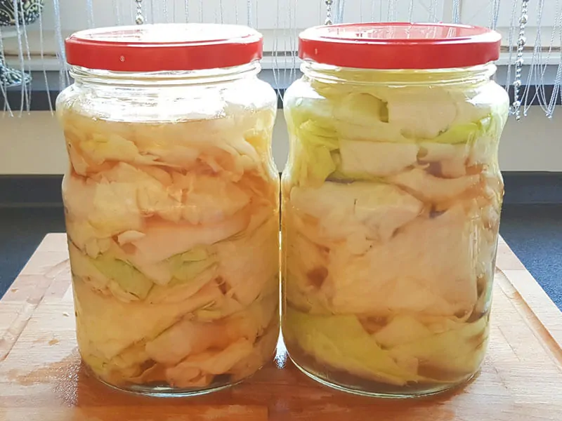 - Legen Sie den Weißkohl in die Gläser und drücken Sie es dabei gut aufeinander.